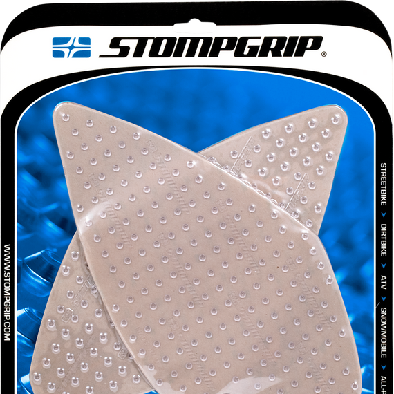 Caracteristicas: Make gripping your ride incredibly easy for increased bike control with more contact between bike and rider Provides more lower body grip and less upper body stress Ultra-clear proprietary elastomer material means paint and graphic remain visible through traction pads Non-abrasive material; designed to wear down and be replaced like a tire Will not wear down leathers as compared to grip tape Pre-molded with rounded edges that resist peeling Super-strong 3M™ peel-and-stick adhesive Made in the U.S.A.