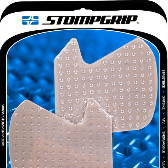 Caracteristicas: Make gripping your ride incredibly easy for increased bike control with more contact between bike and rider Provides more lower body grip and less upper body stress Ultra-clear proprietary elastomer material means paint and graphic remain visible through traction pads Non-abrasive material; designed to wear down and be replaced like a tire Will not wear down leathers as compared to grip tape Pre-molded with rounded edges that resist peeling Super-strong 3M™ peel-and-stick adhesive Made in the U.S.A.