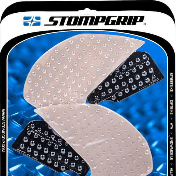 Caracteristicas: Make gripping your ride incredibly easy for increased bike control with more contact between bike and rider Provides more lower body grip and less upper body stress Ultra-clear proprietary elastomer material means paint and graphic remain visible through traction pads Non-abrasive material; designed to wear down and be replaced like a tire Will not wear down leathers as compared to grip tape Pre-molded with rounded edges that resist peeling Super-strong 3M™ peel-and-stick adhesive Made in the U.S.A.