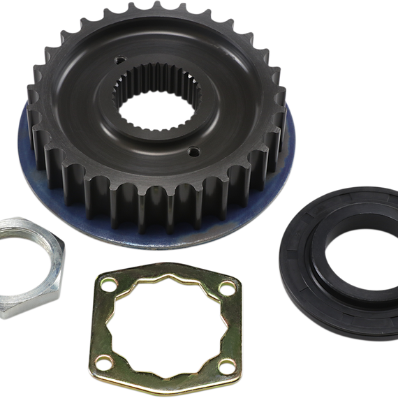Caracteristicas: Made from 6061 T-6 aluminum, then hard anodized for durability One-third the weight of stock pulleys All 85-06 Big Twin pulleys come with a spacer for use on 85-93 models When using a larger or smaller pulley, change in belt length and modifications to the axle adjustment slots may be required Made in the U.S.A.