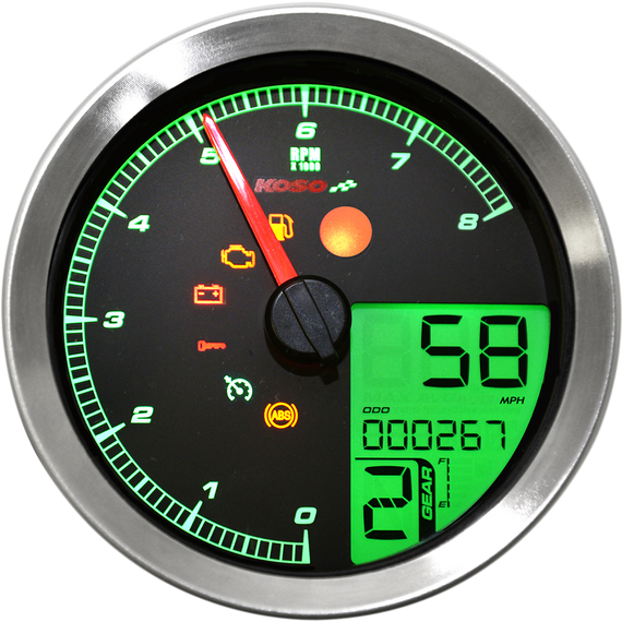 Caracteristicas: High-quality plug-n-play design Eight-color changing LCD display Features tachometer, speedometer, odometer, engine temperature and fuel level Six indicator lights; fuel, engine, battery, cruise control, ABS and anti-theft Measures 3.30" diameter without bezel; 3.73" diameter with bezel Fits models that use 3-3/8" stock mounting cup.