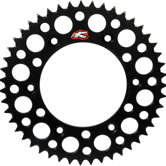 Caracteristicas: Inner ring is the same high strength Ultralight™ 7075 T-6 aluminum used for the standard Renthal sprocket Outer ring is electro-less nickel coated steel for ultimate durability and is designed with the minimum amount of material to keep weight down The outer ring is expanded at 200°C and then fitted over the inner; this interference fit combined with the wave pattern ensures a permanent bond for the life of the chainwheel The flat socket head screws add additional strength to the chainwheel during side impacts and eliminates contact with the chain guide Self cleaning mud grooves between each tooth prevent dirt build upand reduce chainwheel wear and weight Will outlast a standard all aluminum sprocket by 3 times, yet is much lighter than an all steel rear sprocket