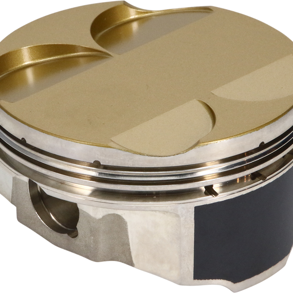 Caracteristicas: Aligned Grain Flow Technology - In-house forging has allowed JE to develop proprietary forging technology that directs the grain flow of the aluminum to flow around critical areas of the piston, increasing strength Lateral gas ports channel combustion gases to the back of the top ring groove adding pressure behind the compression ring to keep it pushed against the cylinder, providing improved and more consistent ring seal, critical in boosted applications Ultra-thick ring lands aid in maintaining ring stability in forced induction and high-horsepower N/A engines, contributing to consistent ring seal and consistent power Thermal barrier crown ceramic coating on the piston crown greatly reduces heat transfer into the piston material, decreasing fatigue and improving longevity Proprietary, moly-based dry film skirt coating is applied in-house and reduces operating friction for better wear resistance Accumulator groove provides additional volume to trap unwanted gases below the top ring to keep pressure low and ring seal and performance high Two oil channels fed into the pin bore maintain proper lubrication to improve wrist pin and pin bore wear resistance Complete kit includes all necessary pistons, rings, wrist pins, and wire locks under one part number Upgraded 9310 wrist pins are stronger and thicker, designed to withstand additional loads of forced