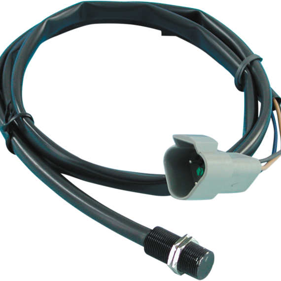 Caracteristicas: Inductively reads gear teeth, pulley bolts or any ferrous metal passing by the sensor Provides a pulse signal to the speedometer which in turn calculates and displays the bike's speed Will not work to drive a stock Harley-Davidson electronic speedometer