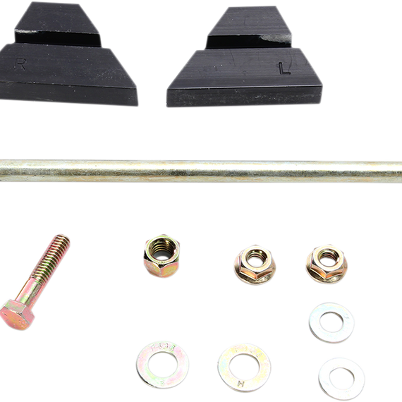 Caracteristicas: A fix for elongated holes of front shock mount on suspension slide rail Lower front shock bolt tends to loosen and elongate hole in the rail Easy bolt on brace eliminates the need for welding or rail replacement Install before damage occurs as a preventative measure Contains two aluminum billet braces and mounting hardware