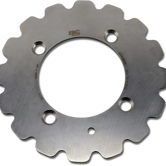 Caracteristicas: Heat-treated carbon steel brake rotors Steel construction extends rotor and brake pad life by eliminating galling Rotors come with or without scraper holes (according to OEM rotor design) A new range of brake rotors for ATV/Quad/Side x Side machines featuring lightweight vee-profiled contours These rotors look great and are self cleaning whilst improving brake performance Made from durable and tough heat treated stainless steel, 100% made in our British manufacturing facility using premium German mill-rolled steel, heat treated and then diamond ground to deliver great braking at less than OEM prices