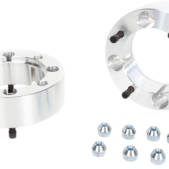 Caracteristicas: Enable use of larger aftermarket tires that won't rub against shocks, struts and/or exhaust Increase stability by moving wheels out slightly from hubs and shocks No OEM studs are required to be removed; stud extenders are not used. Wide Tracs bolt to OEM studs; wheel is then bolted to grade 8 Wide Trac stud (included). Spacers are comparable to automotive-grade wheel adapters; design is the strongest available for ATVs.