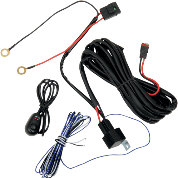 Caracteristicas: Brite Lites Deluxe wiring harness complete with relay, fusible link and lighted switch Light bar harnesses have plug-n-play connections for use with Brite Lites LED light bars Triple-sealed for water-tight use