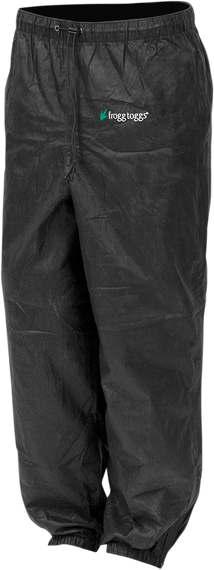 Caracteristicas: The Classic Frogg Toggs rain pants designed to fit a woman's body Made of waterproof, breathable, 100% non-woven polypropylene material Lightweight 17 oz. design makes these pants compact and easy to store Pants feature 1" waist band with adjustable locking shock cord, 1" ankle band with elastic and hook-and-loop closure, an expanded 4" back rise for added protection and molded polymer zippers and polymer snaps Because exhaust pipes are likely to come in contact with the rain pants, the use of Smokin' Toad Heatshield and Patch Kit is recommended.