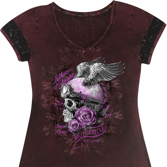 • Short sleeve V-Neck T-Shirt with mesh/lace sleeves