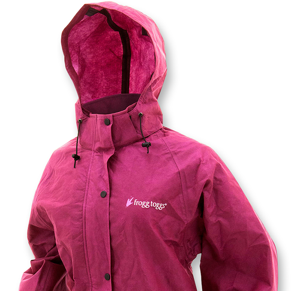 Caracteristicas: The Classic Frogg Toggs rain jacket designed by women to fit women Made of waterproof, breathable, 100% recyclable, non-woven polypropylene material Lightweight 17 oz. design makes this jacket compact and easy to store Roomy bomber-style jacket features fully adjustable, attached, tuck-away hood with zip closure; zippered hand warmer pockets; 1" elastic waist and wrist bands; front zipper closure with snap shut storm flap; molded polymer zippers and polymer snaps