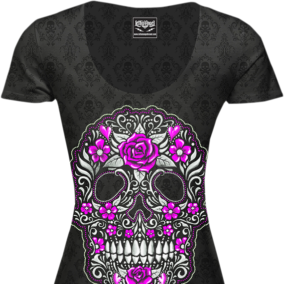 Caracteristicas: Fitted style, for a looser fit order one size up Burnout fabric creates a semi-transparent t-shirt Full front print and Lethal Angel® back print Designed in the USA