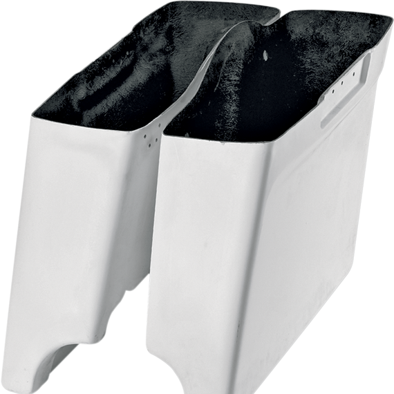 Caracteristicas: Constructed of fiberglass with a gel-coat finish Bags only; accepts stock H-D lids and hardware Mounting holes come pre-drilled Right and left sides sold separately Made in the U.S.A.
