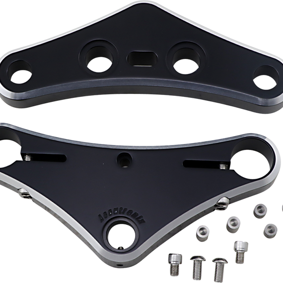 Aditamentos:Screamin' Eagle Softail Springer FXSTSSE : 2007 Softail Custom EFI FXSTC : 2008-2009-2007-2010 Softail Night Train EFI FXSTBI : 2001-2008-2005-2006-2009-2007-2002-2003-2004 Softail Springer EFI FXSTSI : 2005-2001-2004-2002-2003-2006 Softail Standard EFI FXSTI : 2001-2005-2010-2008-2009-2004-2006-2002-2003-2007 CVO Softail Springer FXSTSSE3 : 2009 Screamin' Eagle Softail Springer FXSTSSE2 : 2008 Softail Springer FXSTS : 2000-2002-2004-2006-2001-2003-2005 Softail Night Train FXSTB : 2002-2001-2005-2006-2000-2004-2003 Softail Standard FXST : 2001-2002-2004-2006-2000-2003-2005 Softail Deuce EFI FXSTDI : 2002-2004-2003-2001-2005-2006-2007 Softail Deuce FXSTD : 2005-2002-2003-2004-2001-2000-2006 Wide Glide FXDWG : 2000-2002-2004-2003-2005-2006-2001 Wide Glide EFI FXDWGI : 2000-2007-2010-2002-2003-2004-2006-2008-2001-2005 Wide Glide FXDWG3 : 2002 Screamin' Eagle Deuce FXSTDSE : 2003 Screamin' Eagle Deuce FXSTDSE2 : 2004 Wide Glide FXDWG2 : 2001 Specs:Product Name: Triple Tree