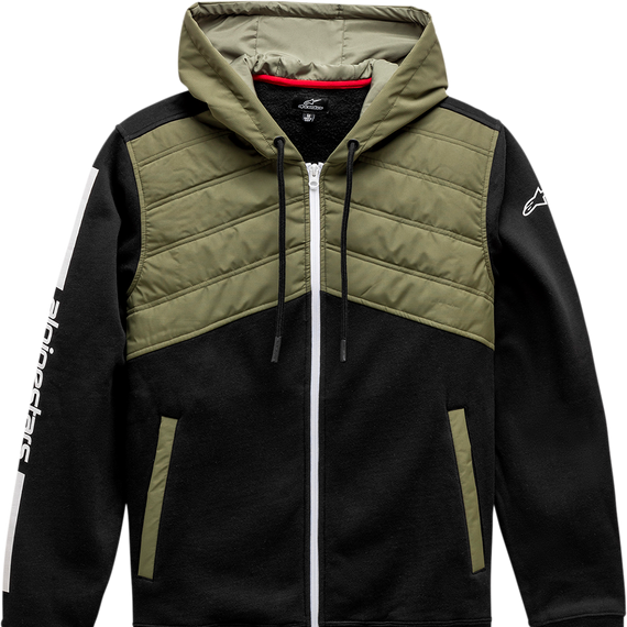 Caracteristicas: 80% Cotton / 20% Polyester, 280g/m2 Poly fill quilted front yoke panel with poly overlay, fleece body Reverse coil zipper at front, welt pockets with overlay Rib cuffs and hem Internal main label and external label branding Print Logo at sleeve