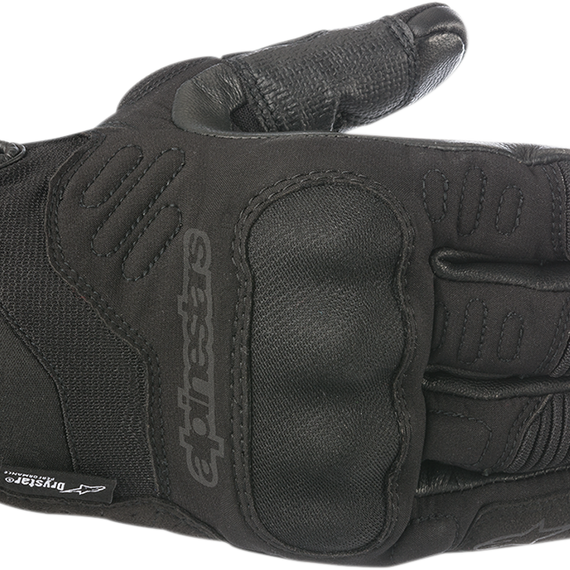 Caracteristicas: Combination of stretch polyamide fabric and softshell material on glove back Alpinestars Drystar® waterproof, breathable membrane Ergonomic stretch inserts between the thumb and palm for flexibility and ease of movement Molded hard knuckle guards for increased impact resistance Polyurethane (PU)-coated reinforcements on palm and thumb for superior grip on the controls Synthetic suede reinforcements with foam padding on the palm and outer hand impact areas for abrasion resistance Stretch accordion zones on fingertips for increased flexibility and fit Reflective print to increase rider visibility