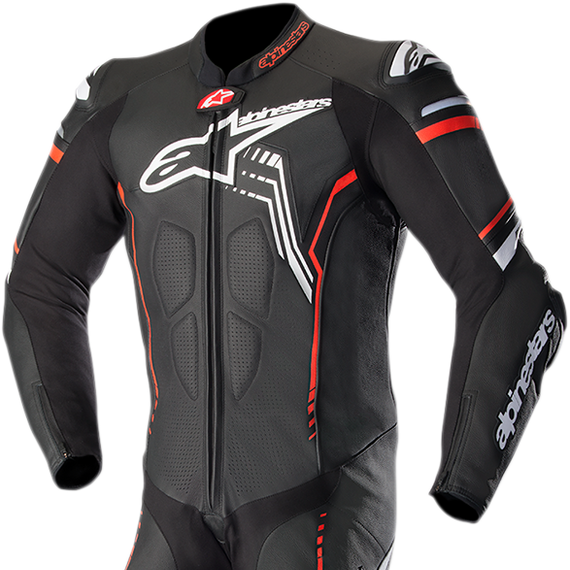 GP Plus v2 1-Piece Leather Suit - Black/Red Fluorescent - US 46 / EU 56
