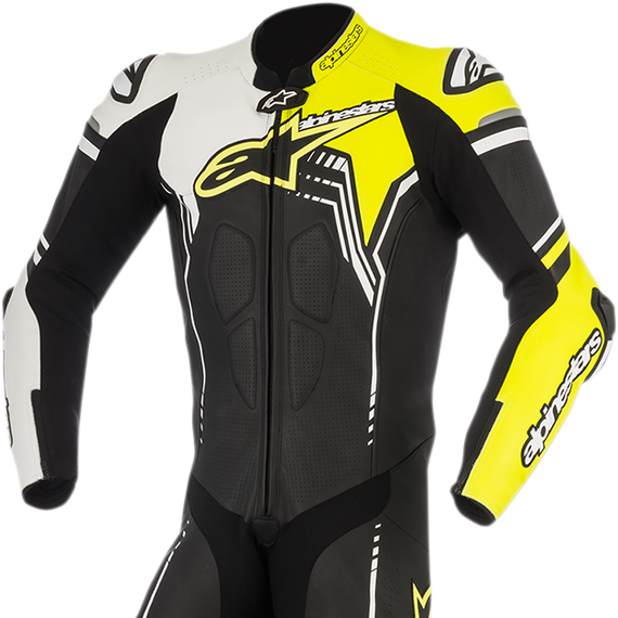 GP Plus v2 1-Piece Leather Suit - Black/White/Yellow Fluorescent - US 42 / EU 52