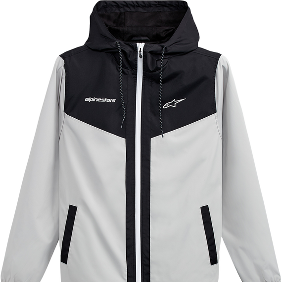 Caracteristicas: Lightweight color blocked windbreaker jacket Fixed hood with drawcords, reverse coil zipper at front On seam hand pockets, bungie adjusters at hem, elastic cuffs Internal main label and external label branding Logos at left and right chest 100% Polyester, DWR Coating