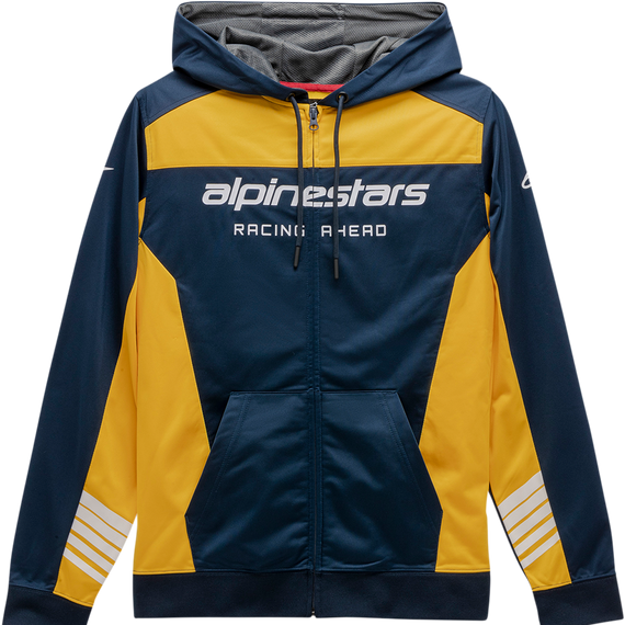 Caracteristicas: Hooded zip front printed fleece Mesh lined hood, tech drawcords, rib cuffs and hem Hidden coil zipper Internal main label and external label branding 80% Cotton/20% Polyester