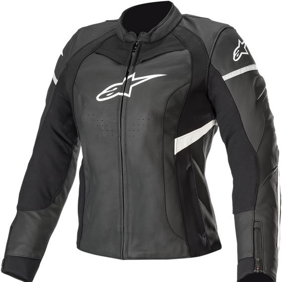 Caracteristicas: Optimized for a women's performance fit Main chassis constructed from 1.3 mm premium bovine leather Large accordion stretch panels help movement and comfort on the bike Stretch panels on sleeves and chest further improve fit and feel Waist adjustment for an improved riding fit Two zippered hand pockets for real-world practicality Waist connection zipper allows quick and easy attachment to Alpinestars riding pants Print logos and direct print graphic details Zippered air intake vents are strategically positioned for optimized airflow Localized perforations for excellent ventilation and internal airflow Low profile collar construction with microfiber comfort edging plus 3D textured fabric comfort inner collar lining for high levels of rider comfort Pre-curved sleeve construction reduces fatigue Reflective details to make the rider more visible to other road users Chest and back compartments are designed to accommodate the Alpinestars Stella Nucleon chest and back inserts, available separately Multiple snap button system to integrate the Level 2 Alpinestars Nucleon Back protector Waterproof inner wallet pocket for peace-of-mind storage Inner removable thermal liner for versatility Bio Armor shoulder and elbow protectors