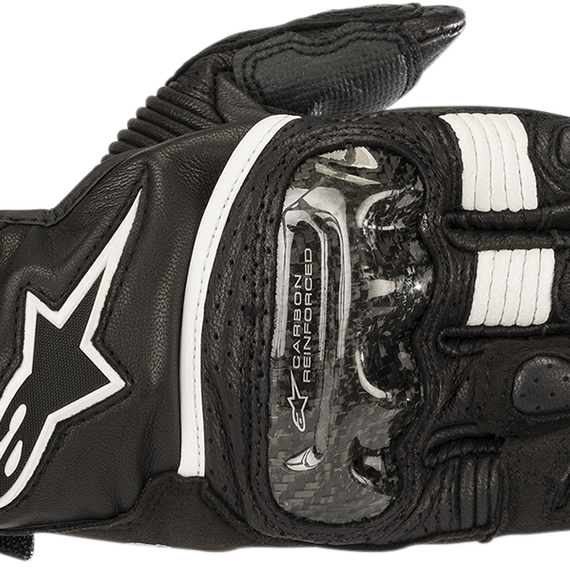 Caracteristicas: Developed specifically for an optimized woman's fit Full premium leather main construction, with leather palm for comfort and control and perforated leather on top of hand and wrist for breathability Ergonomically shaped Alpinestars' carbon knuckle guard is reinforced on the interior side with thick EVA foam Alpinestars double wrist closure system, with hook and loop closures to ensure close fit and security closure Synthetic suede side reinforcements on landing zones Accordion leather stretch inserts on fingers and thumb to increase fit and directional movement comfort Alpinestars' patented finger bridge Vented knuckle guesset aids internal airflow