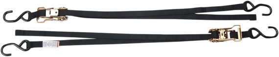 Caracteristicas: Twin pack of ratchet-buckle tie-down straps with safety locks for securing motorcycles, snowmobiles, ATVs and other equipment Vinyl-coated hooks protect finish Durable nylon-web straps 1,200-lb. assembly strength; 400-lb. working load limit Made in the U.S.A.