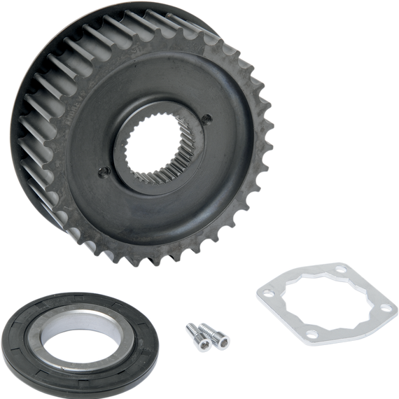 Caracteristicas: Machined from heat-treated, gear-quality steel Made in the U.S.A. May require some elongation of axle hole in swingarm or change in belt length to allow for proper belt adjustment.