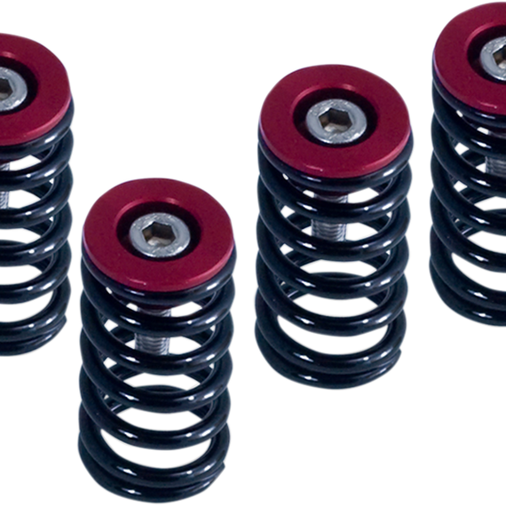 • Heavy-duty spring kits contain six powder-coated springs, stainless steel screws and choice of anodized spring cups; do not increase lever effort.