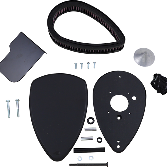 Caracteristicas: Slim 1-1/2" hi-flow reusable filter and specially designed back plate dynamically increases air flow and velocity Complete with breather kit, mounting hardware and micron-fabric raincoat for wet-weather riding Flow-bench and dyno-designed for substantially increased horsepower and torque Innovative styling enhances and accentuates your "V" Twin engine Easy-to-follow instructions included for a do-it-yourself install Set-back, thin-line design does not interfere with rider's leg Maximizes overall performance and fuel efficiency Made in the U.S.A.