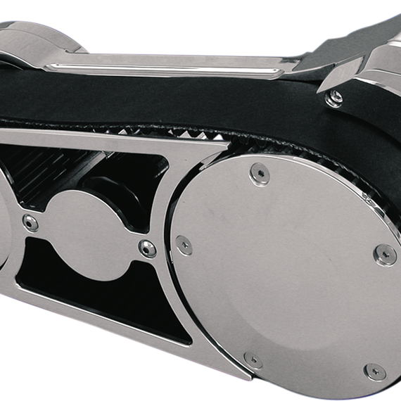 Caracteristicas: Kits include front and rear pulley, 3-3/8" belt, nine aramid friction plates and 11 steel clutch plates; use up to nine springs for varying pressure to accommodate any motor size Include oil filter mount between the pulleys Polished outboard bearing support; outboard support is reversible and the back side is channeled for another distinct look, but only the flat side is polished Replacement components available separately Made in the U.S.A. Systems are not designed for use with floorboards.
