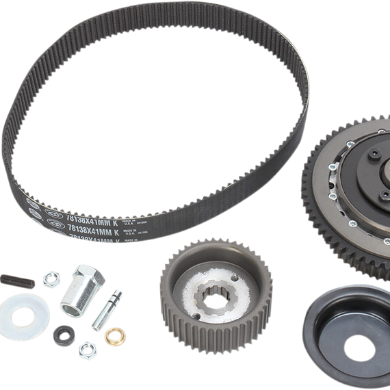Caracteristicas: 1-1/2" and 1-5/8" kits include front pulley, belt, clutch hub, clutch basket and aramid clutch set (consists of two half plates, four full plates and five steel drive plates) Direct bolt-in applications 3" electric start kit includes front pulley, belt, clutch hub and clutch basket and aramid clutch set (consists of two half plates, four full plates and five steel drive plates), 6061 T-6 billet motor plate, outside guard and polished pulley cover All systems come with the Quiet Clutch system Precision-machined, polished aluminum pressure plate uses nine springs and shoulder bolts to ensure even spring pressure (included in kit) Rear pulley has a 40mm, double-row bearing with an inner stress-proof steel clutch hub to support the clutch Made in the U.S.A. 3" system is not designed for use with floorboards. Not for use with offset primaries.