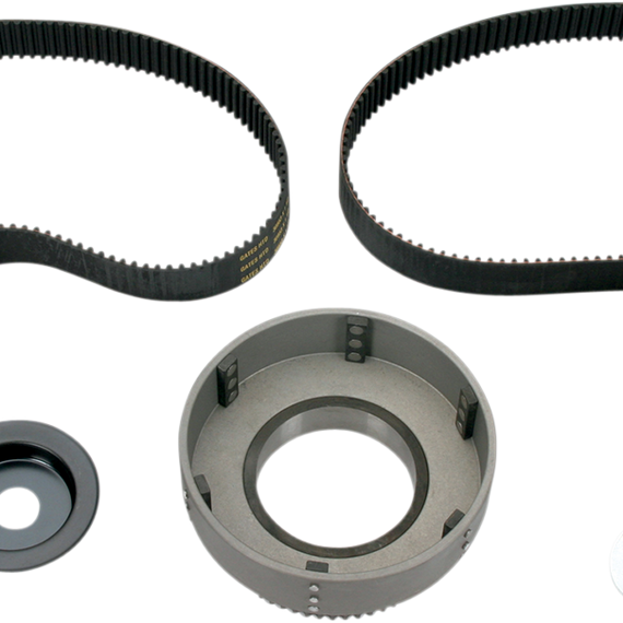 Caracteristicas: All 8mm kits come with belt, clutch basket, front pulley, nut and washer 3" kit comes with a 52-piece roller bearing kit Pulley and clutch basket are hard anodized aluminum; front pulley is drilled and tapped for easy removal Inner clutch hub and plates are not included; must be purchased separately Made in the U.S.A. Not for use with offset primaries.