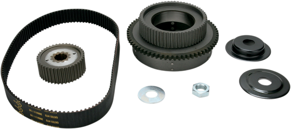 Caracteristicas: All 8mm kits come with belt, clutch basket, front pulley, nut and washer 3" kit comes with a 52-piece roller bearing kit Pulley and clutch basket are hard anodized aluminum; front pulley is drilled and tapped for easy removal Inner clutch hub and plates are not included; must be purchased separately Made in the U.S.A. Not for use with offset primaries.