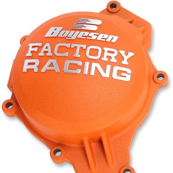 Caracteristicas: Look like a professional with the Factory Ignition Cover Seals properly, guarding inside of engine from dirt and water and outlasts stock covers Boyesen Factory Covers are cast from the highest grade of aluminum and are strong yet lightweight Super-tough, powder-coated finish resists weathering and wear and tear OEM paper gaskets can be reused, or use the supplied O-ring
