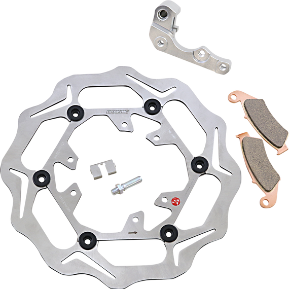 Caracteristicas: 270mm WL series rotor features an Open Pin design that allows the rotor to expand freely under high heat conditions and maintain high brake performance Provides substantial increase in stopping power with improved brake feeling and modulation for the best overall performance An oversized front rotor allows you to brake later into corners, dramatically lowering lap times Braking profile utilizes edges that constantly clean the pads' surface, renewing it and giving the best pad-rotor contact at all times in all conditions Kit includes a caliper relocation bracket and top-quality Braking pads