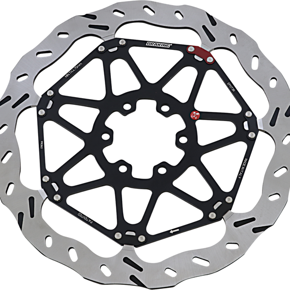 Caracteristicas: Designed with input from Braking's working experience with best teams in most important competitions in the world (SBK and SS) The braking track ensures a better heat dissipation, ensuring a steady friction coefficient The new connection structure allows a more controlled radial axial play, with a better load transfer between the braking track and the carrier Thermal design optimized Maximum weight-to-performance ratio Consistent disc temperature Absence of heat spots Direct load transfer between rotor and hub No pin deformation due to applied load