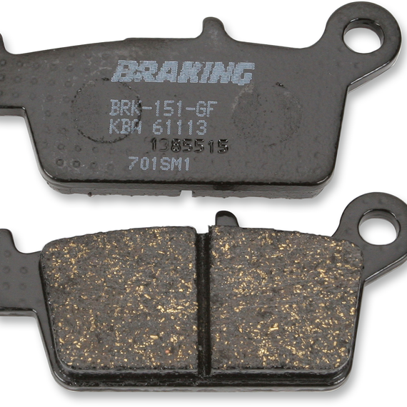 Caracteristicas: Asbestos and nickel-free Uses an organic base material for outstanding friction along with a soft, non-aggressive metal that allows the pad to glide  on the disc, providing better control Semi-metallic compound - great for OE replacement Best performance at lower temperatures Offers an aggressive response and is easily identified by the black backing plate