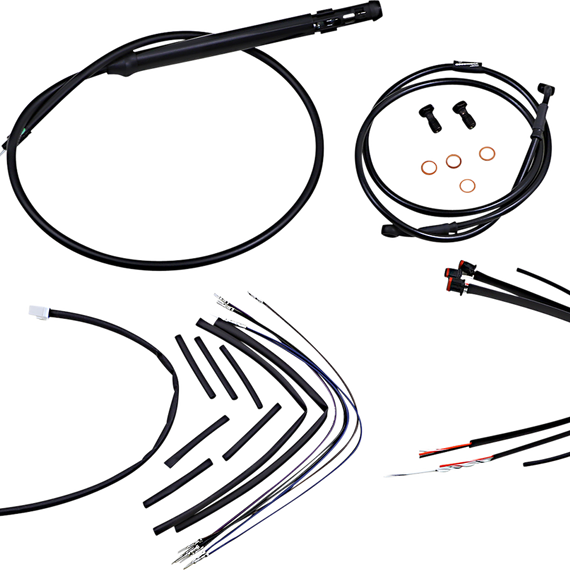 Caracteristicas: Complete installation kit for Burly Ape hangers Kits include extended brake line (unless noted), extended clutch cable/clutch line, extended throttle/idle cables as required and all necessary wiring Brake lines, when included, feature PTFE inner liner and heavy-duty stainless steel outer braid Dresser kits reuse stock Throttle-By-Wire harness Kits are based on using 2" risers with ape hanger-style handlebars