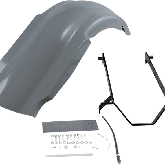Caracteristicas: Provides custom look while filling the gaps between fender and saddlebags Extended to match length of most stretched saddlebags Constructed from high-quality composite materials Jig-drilled for a perfect fit Kit includes rear fender, hidden steel fender brackets and flexible hidden antennae Fender can fit stock rear tire width and up to 200 mm rear tire width Available in primed and ready to paint finish