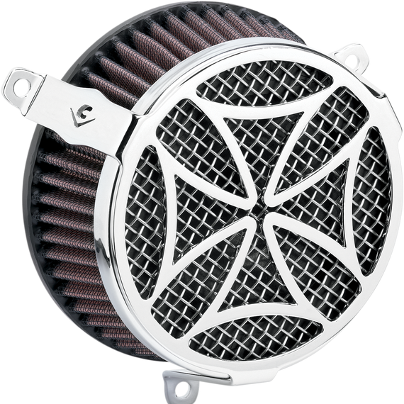 Caracteristicas: The Cobra system consists of a laser-cut, formed steel cover, separate mounting ring, and all the fasteners, seals, backing plate and mounting hardware for easy installation Flows better than stock or competing units, in large part because of its unique internal venturi design of the inner filter High-flow K&N® Air Filter element ensures the maximum air intake and protection Slim profile keeps the unit away from the rider’s leg Formed stainless steel mesh insert Optimizes overall performance Made in the U.S.A.
