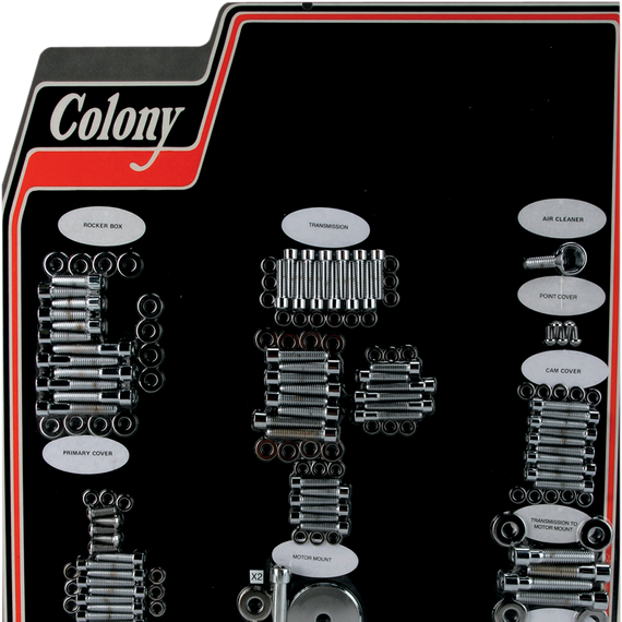 Caracteristicas: High-quality chrome-plated finish Kits include everything you need to mount rocker boxes, primary cover, lifter base, transmission covers, oil pump, air cleaner, cam cover, point cover timing plugs and motor mounts Fasteners for motor case and oil hose cover are also included Made in the U.S.A.