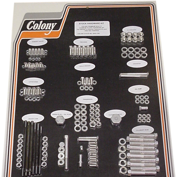 Caracteristicas: Kit includes all stock motor nuts, bolts, washers and studs All hardware meets or exceeds original H-D specifications Made in the U.S.A.