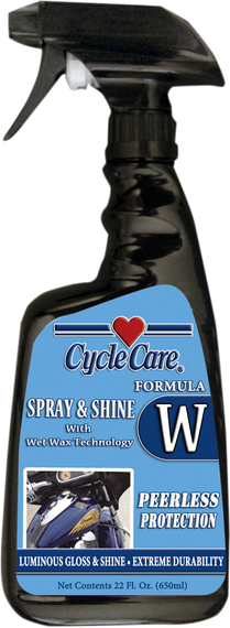 Caracteristicas: Spray Wet Wax produces a durable high gloss shine on a wet or clean and dry surface, with minimal effort Formula W contains no abrasives and is clear coat safe Also safe on Lexan®, Plexiglas®, acrylic or factory coated windscreens Contains no petroleum distillates Made in the U.S.A.