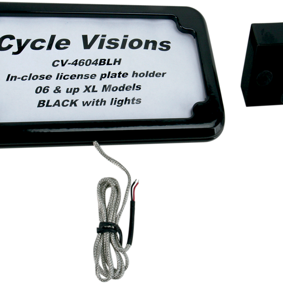 Caracteristicas: Billet aluminum with no visible fasteners Most tucked-in holder on the market today Mounts off the axle on FXST/FLST model applications and off the axle adjuster on FXD/XL applications Accepts most 4" x 7" license plates Not for use with shock relocation kits or saddlebags Made in the U.S.A.
