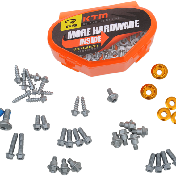 Caracteristicas: Designed to help you maintain and restore your bike 10.9 OEM grade & original factory configuration for precise fit Includes bolts for front fender, rear fender, fork guards, side panels, front number plate, seat and radiator shrouds (and air box on applicable models) Race Ready Carry Capsule included for convenience & organization Fitment spans multiple years and models, thus bonus hardware may result based on which year/model fastener kit is applied to