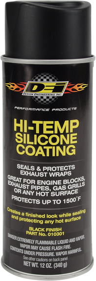 Caracteristicas: Penetrates, seals, protects and prolongs the lifespan of exhaust wrap Protection from abrasions, hot oil spills & road grime Works well on headers, blocks, starters, and many other uses around the home and shop Heat protection up to 1500°F VOC (Volatile Organic Compounds) compliant in all 50 states If using the HT spray on titanium exhaust wraps, additional coats may be required to achieve an even color finish