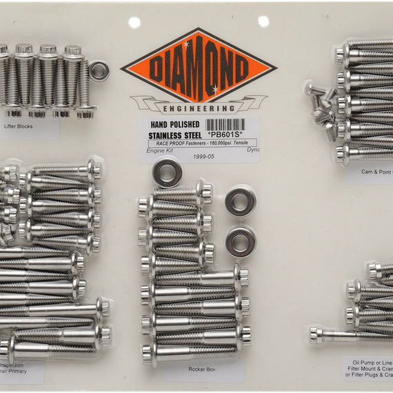 • Diamond Engineering's special hex flange rocker box bolts are included for Twin Cam models
