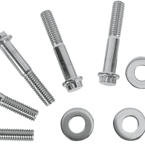 Caracteristicas: Polished to a mirror finish Custom 450 stainless steel 12-Point bolts have 180,000 psi tensile, which is 20% stronger than Grade 8 UNJ3A rolled threads Belt/sprocket kits are ideal for high-performance applications; Race Proof® belt/sprocket bolts can withstand as much horsepower as you can throw at them - many Harley Top Fuel racers use these same bolts without fail for over a decade Made in the U.S.A.