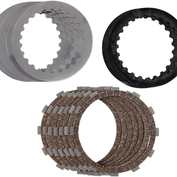 Caracteristicas: Designed to provide extended service life coupled with super smooth power delivery Each kit includes friction plates, steel drive plates, and clutch springs The friction plates are ready to race with no need to soak in oil They are more durable than original equipment and the high heat friction material provides fade-free performance